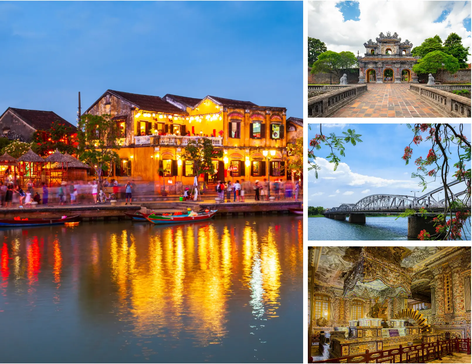 Hue’s imperial heritage and scenic rivers set the stage for a day of cultural immersion. The city is rich in historical sites, traditional arts, and unique culinary delights such as royal-style dishes, bun bo Hue, and local sweets. Traveling further south, you arrive in Hoi An, a UNESCO World Heritage Town renowned for its well-preserved architecture, lantern-lit streets, vibrant markets, and thriving food culture. The city combines history, culture, and coastal charm, offering visitors a lively and unforgettable experience.